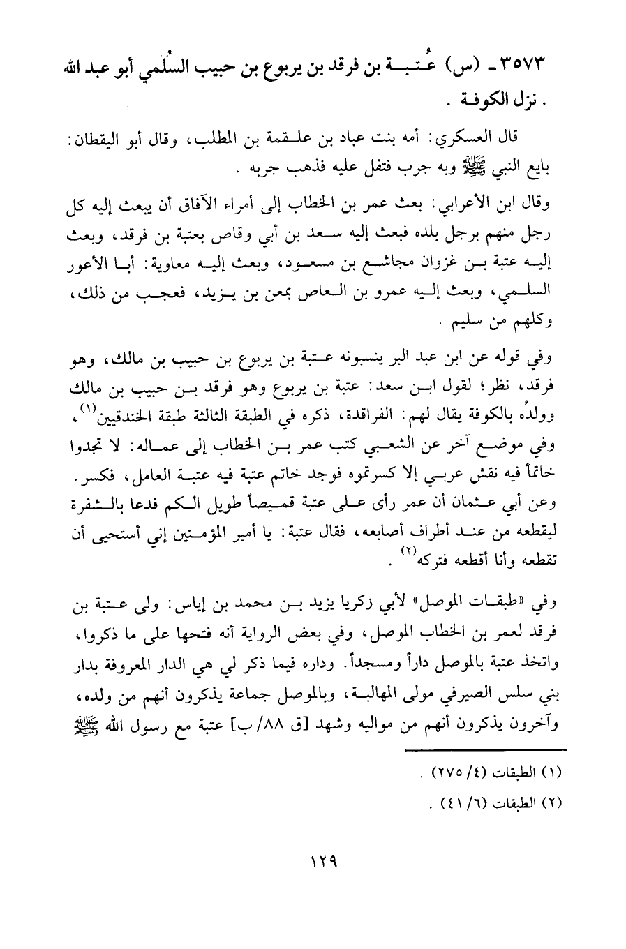 ٣٥٧٣ - (س) عتبة بن فرقد بن يربوع بن حبيب السلمي أبو عبد الله نزل الكوفة.