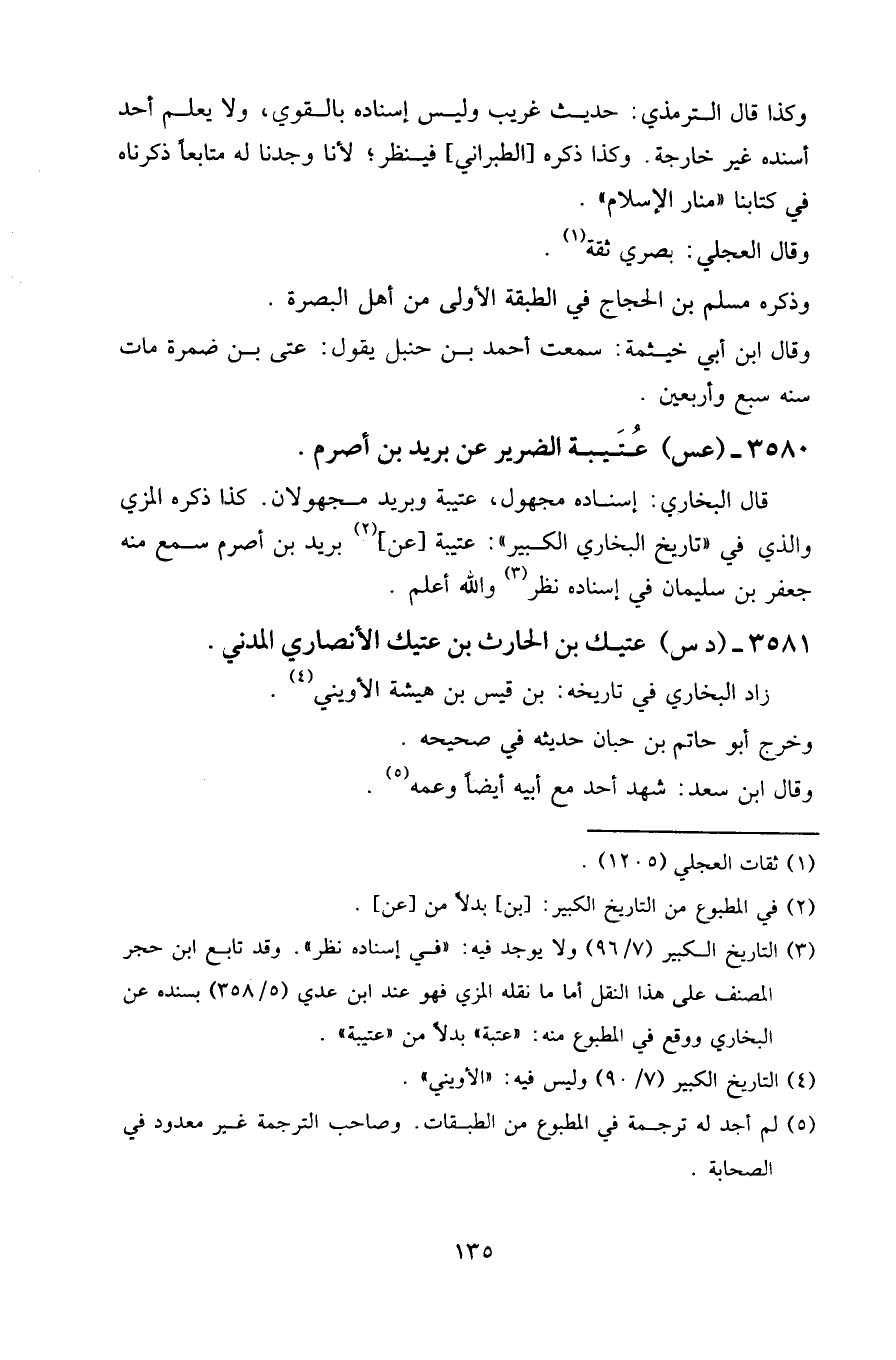 ٣٥٨٠ - (عس) عتيبة الضرير عن بريد بن أصرم.
