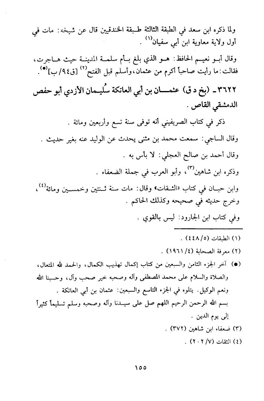 ٣٦٢٢ - (بخ د ق) عثمان بن أبي العاتكة سليمان الأزدي أبو حفص الدمشقي القاص.
