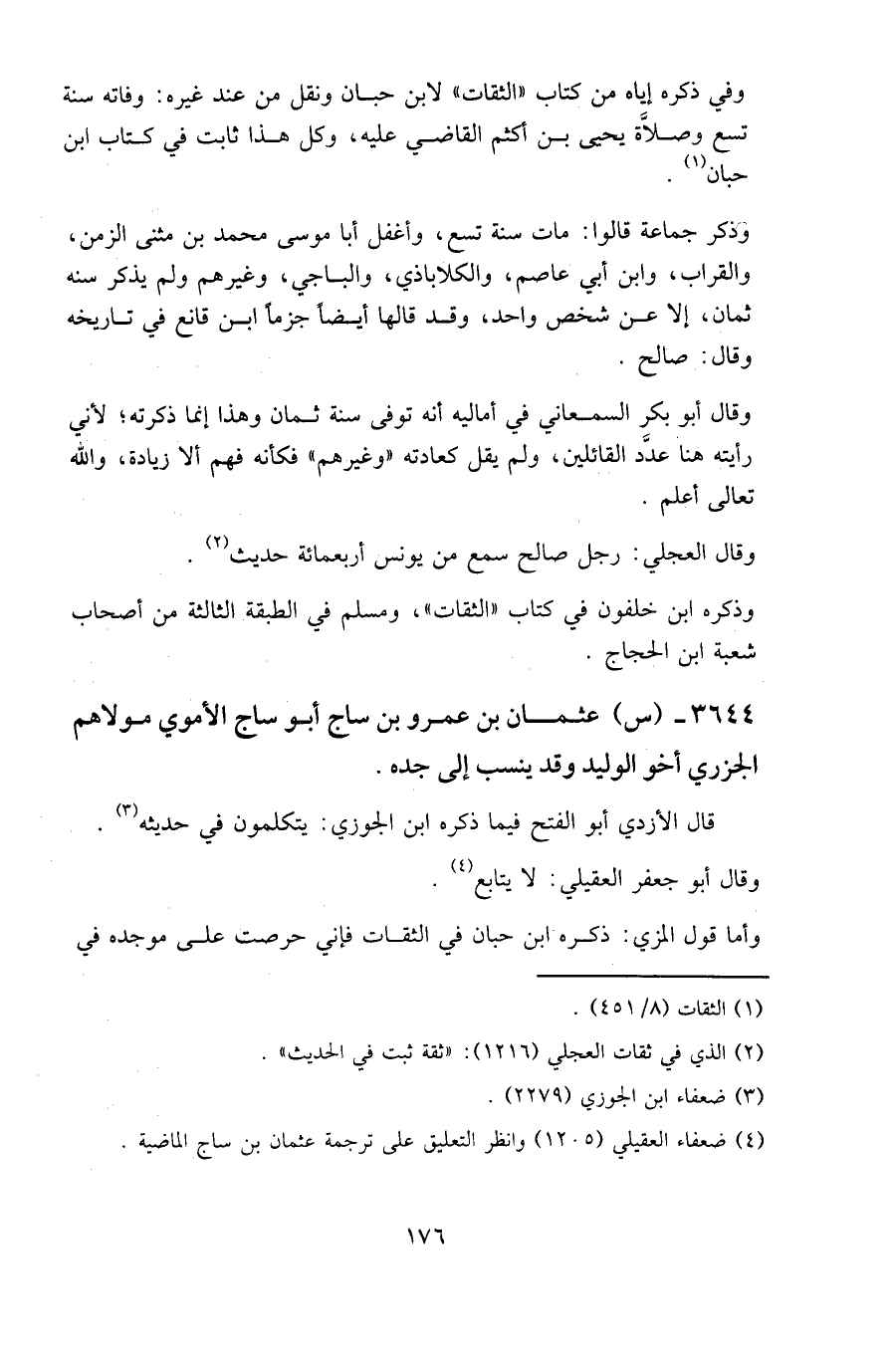وذكره ابن خلفون في كتاب " الثقات "، ومسلم في الطبقة الثالثة من أصحاب شعبة بن الحجاج.