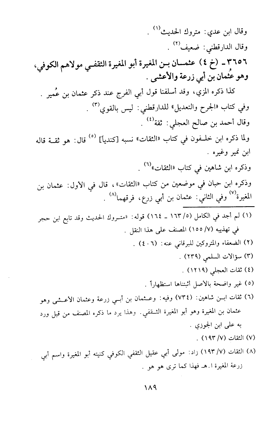وذكره ابن حبان في موضعين من كتاب " الثقات "، قال في الأول: عثمان بن المغيرة، وفي الثاني: عثمان بن أبي زرع، فرقهما.