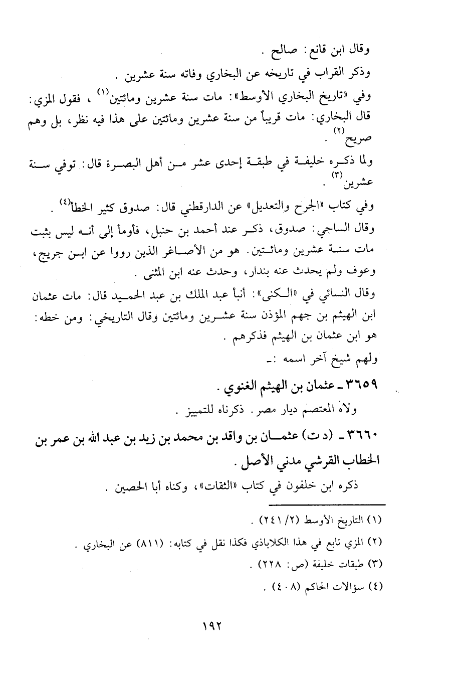 وفي " تاريخ البخاري الأوسط ": مات سنة عشرين ومائتين، فقول المزي: قال البخاري: مات قريبا من سنة عشرين ومائتين على هذا فيه نظر، بل وهم صريح.