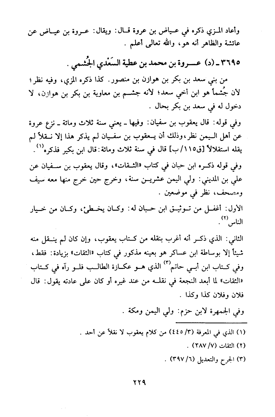 ٣٦٩٥ - (د) عروة بن محمد بن عطية السعدي الجشمي.