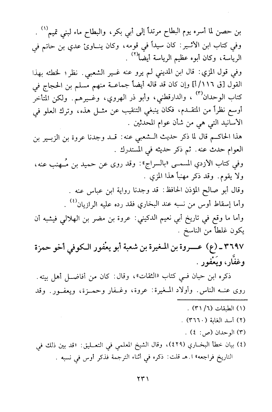 ٣٦٩٧ - (ع) عروة بن المغيرة بن شعبة أبو يعفور الكوفي أخو حمزة وغفار، ويعفور.