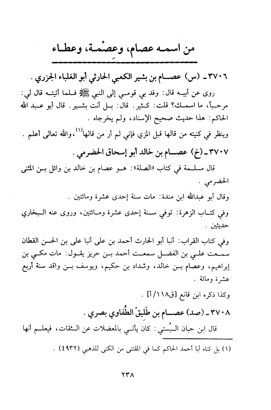 ٣٧٠٨ - (صد) عصام بن طليق الطفاوي بصري.