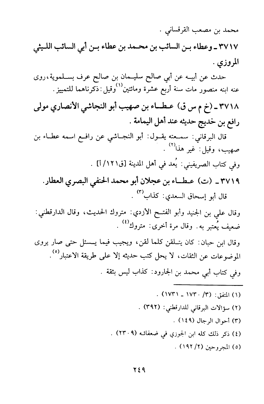 ٣٧١٧ - وعطاء بن السائب بن محمد بن عطاء بن أبي السائب الليثي المروزي.