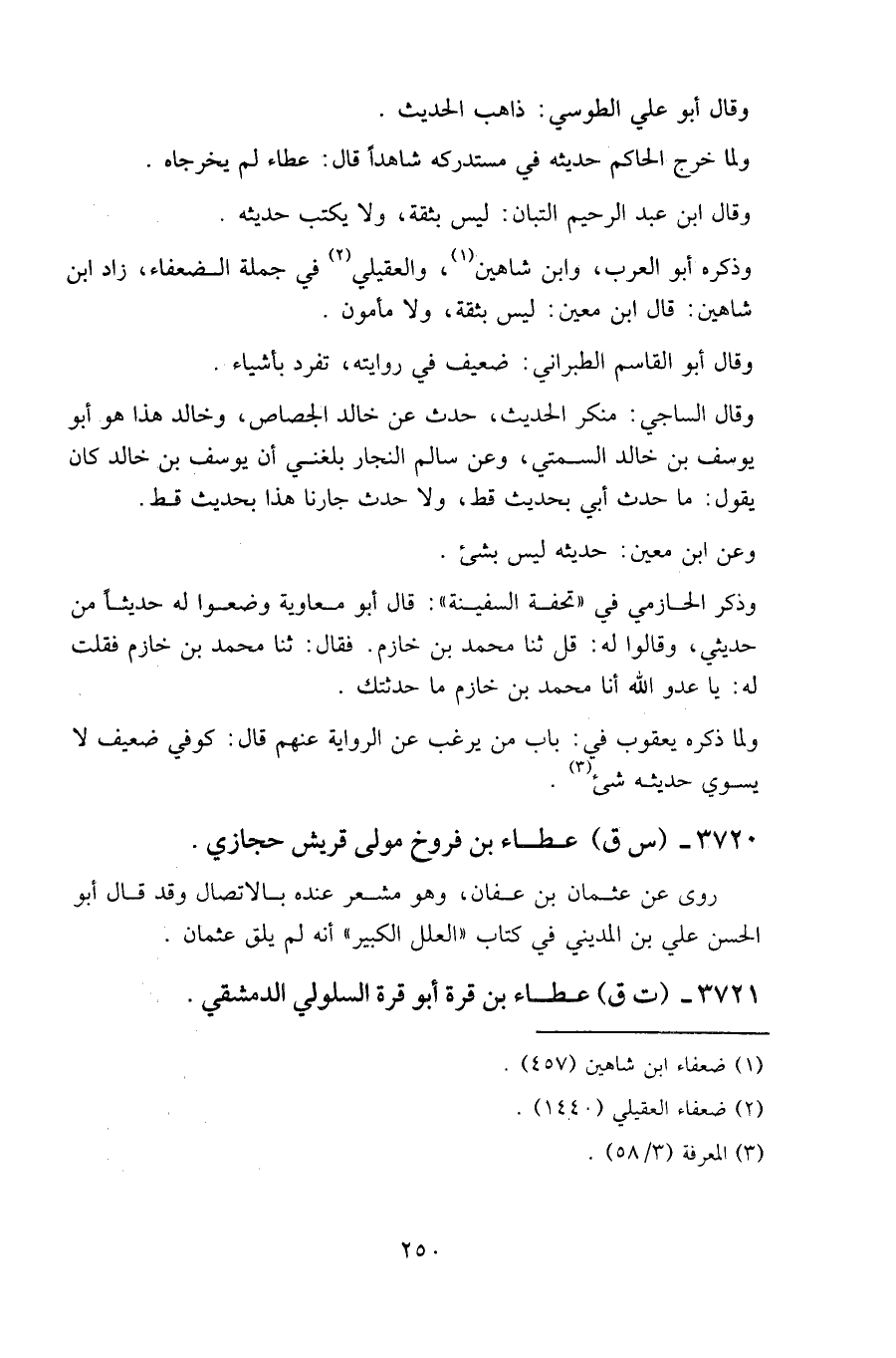 ٣٧٢٠ - (س ق) عطاء بن فروخ مولى قريش حجازي.