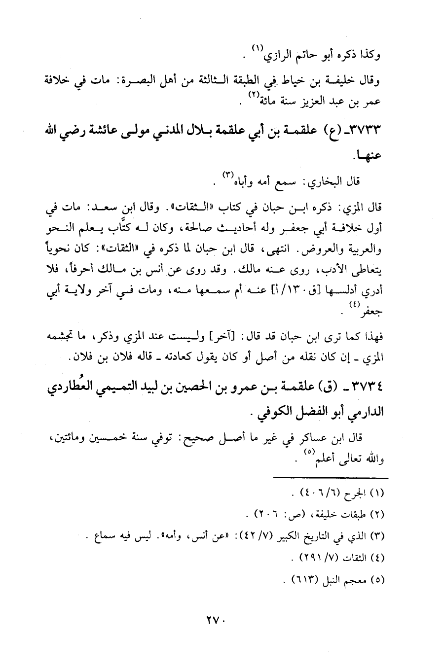٣٧٣٣ - (ع) علقمة بن أبي علقمة بلال المدني مولى عائشة رضي الله عنها.