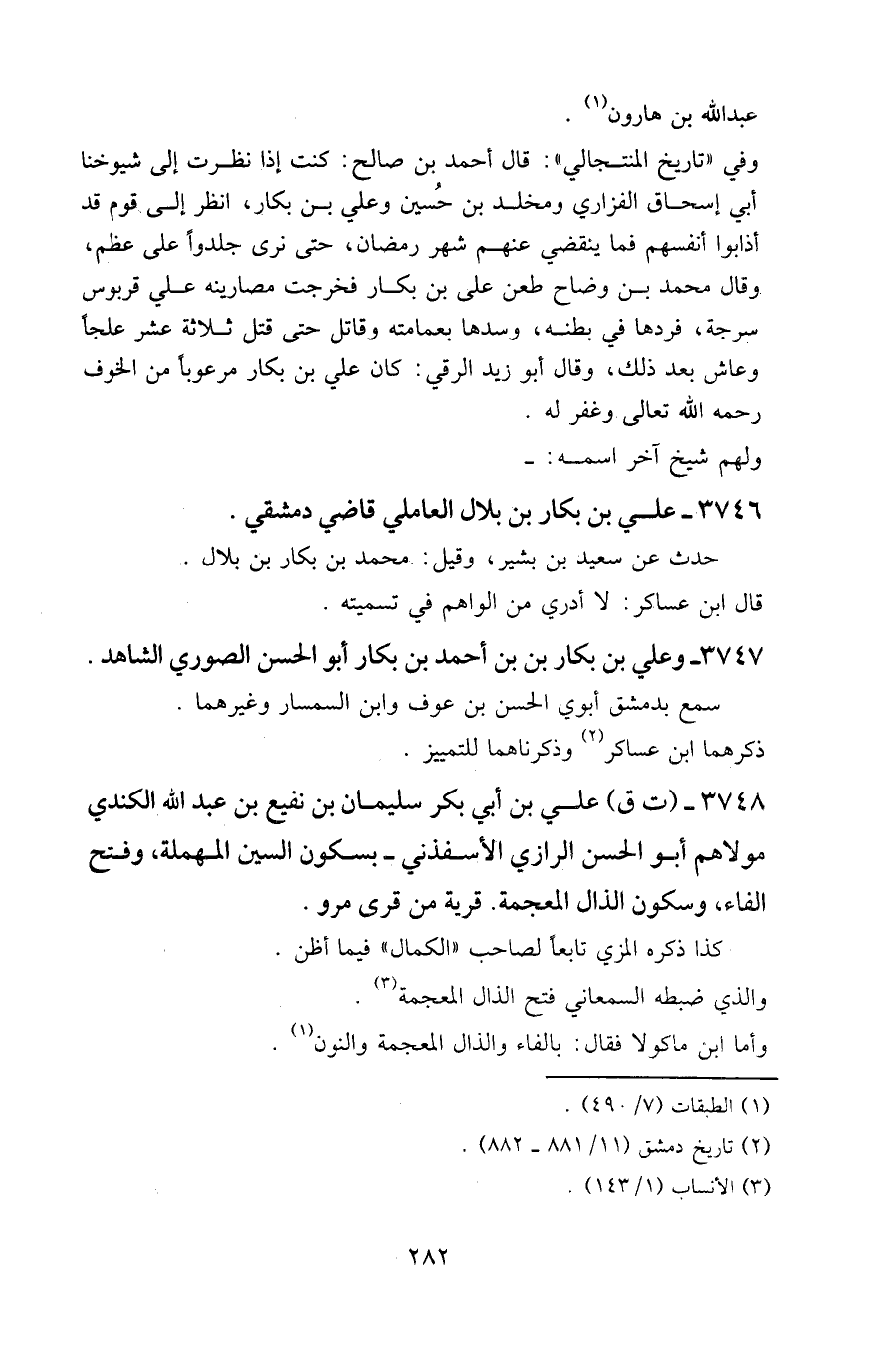 ٣٧٤٦ - علي بن بكار بن بلال العاملي قاضي دمشقي.