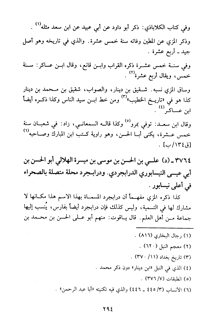 ٣٧٦٤ - (د) علي بن الحسن بن موسى بن ميسرة الهلالي أبو الحسن بن أبي عيسى النيسابوري الدرابجردي. ودرابجرد محلة متصلة بالصحراء في أعلى نيسابور.