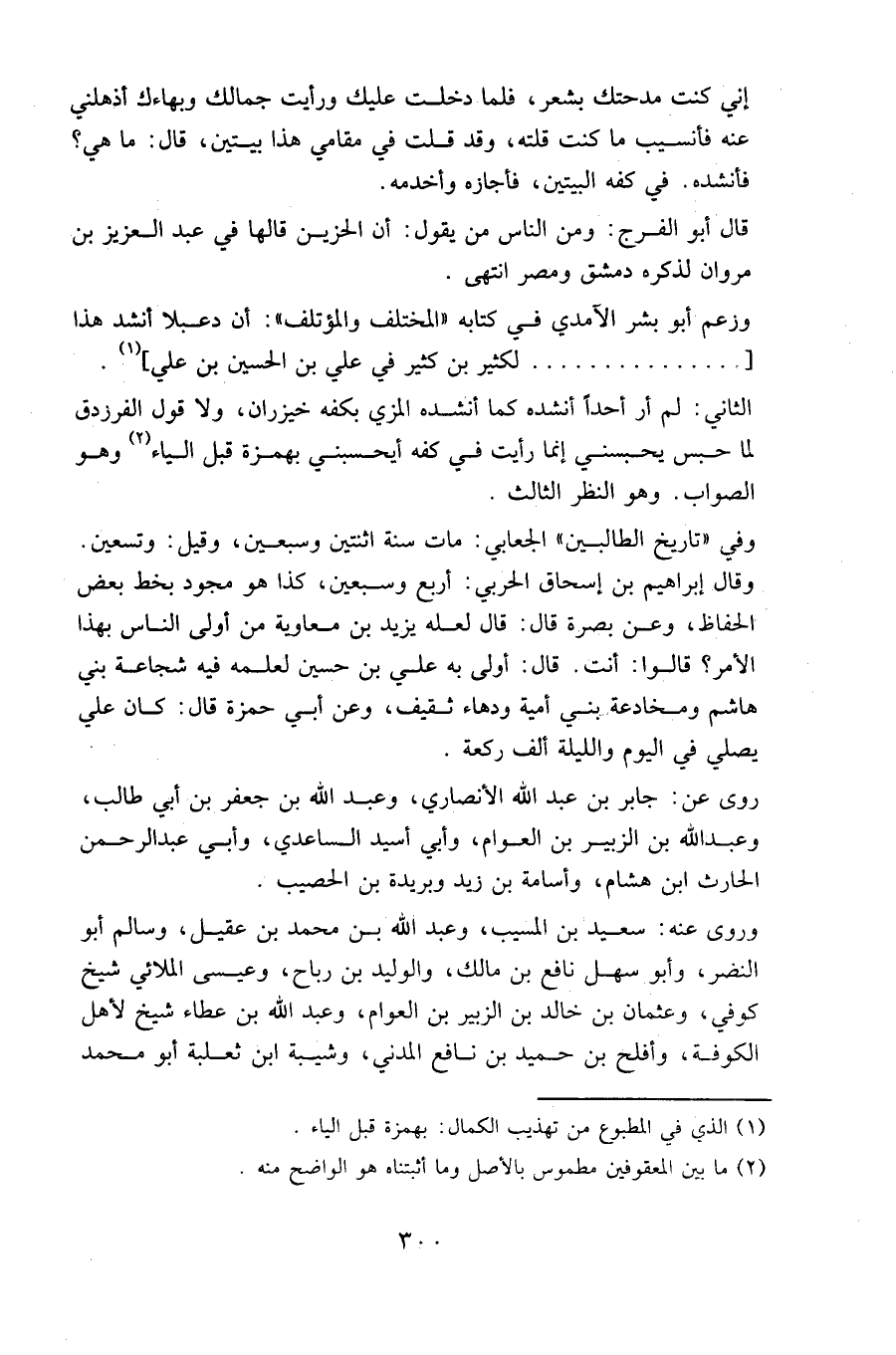 الثاني: لم أر أحدا أنشده كما أنشده المزي بكفه خيزران، ولا قول الفرزدق لما حبس يحبسني إنما رأيت في كفه أيحسبني بهمزة قبل الياء وهو الصواب، وهو النظر الثالث.