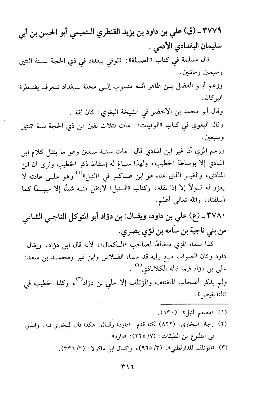 ولم يذكر أصحاب المختلف والمؤتلف إلا علي بن دؤاد، وكذا الخطيب في " التلخيص ".