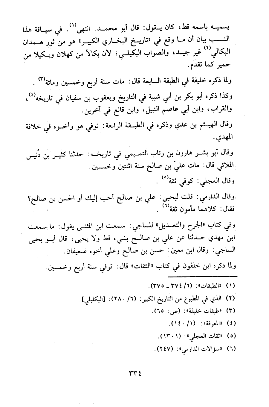 يسميه باسمه قط، كان يقول: قال أبو محمد. انتهى. في سياقة هذا النسب بيان أن ما وقع في " تاريخ البخاري الكبير " هو من ثور همدان البكالي غير جيد، والصواب البكيلي؛ لأن بكالا من كهلان وبكيلا من حمير كما تقدم.