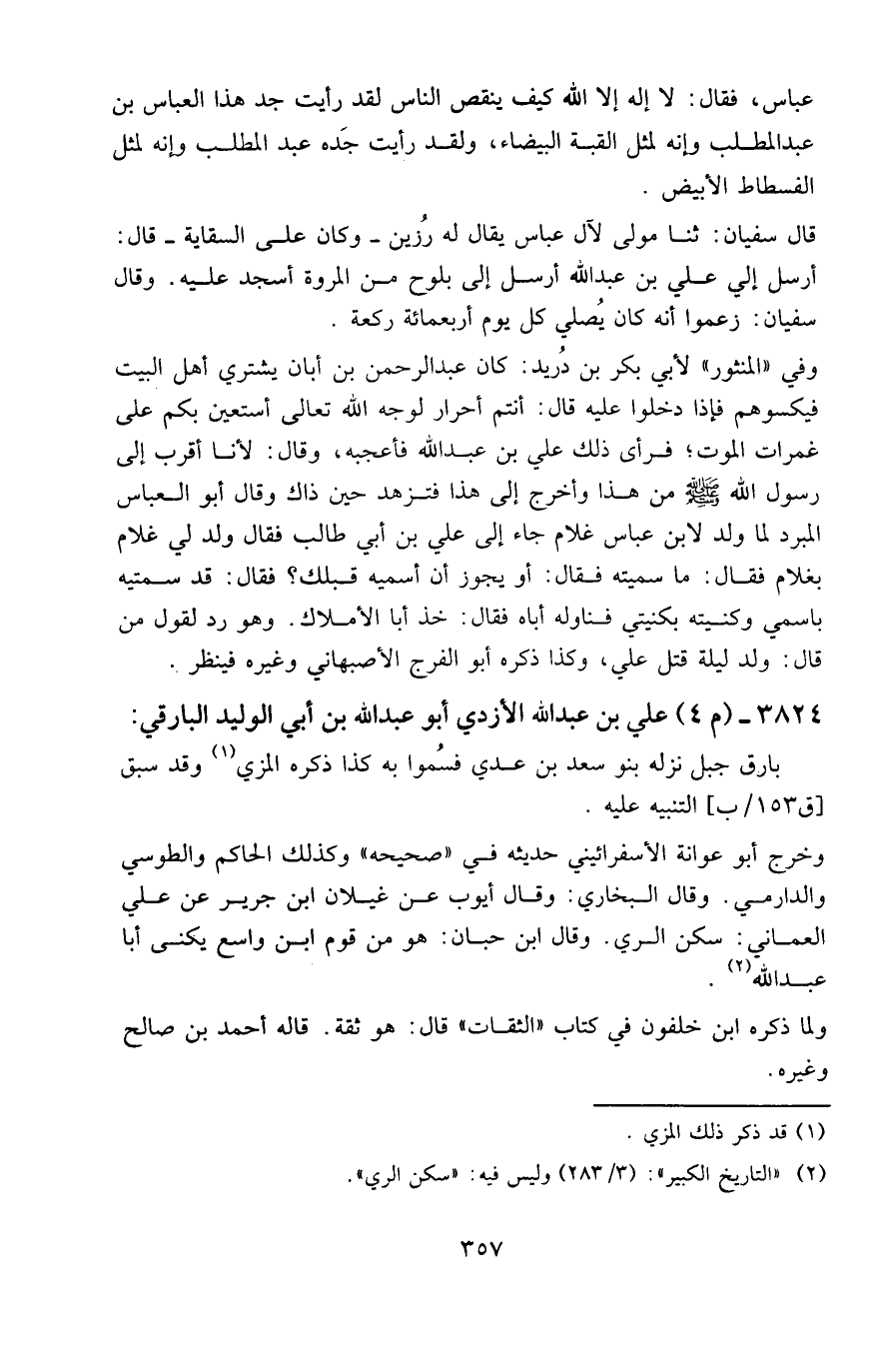 قال سفيان: ، ثنا مولى لآل عباس يقال له رزين – وكان على السقاية – قال: أرسل إلى علي بن عبد الله أرسل إلي بلوح من المروة أسجد عليه. وقال سفيان: زعموا أنه كان يصلي كل يوم أربعمائة ركعة.
