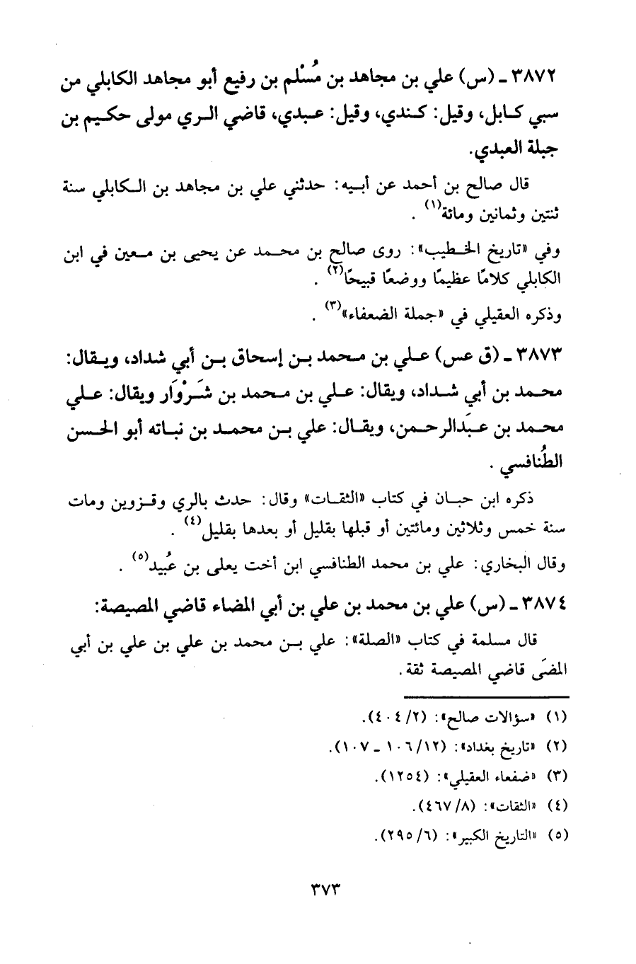 ٣٨٧٢ - (س) علي بن مجاهد بن مسلم بن رفيع أبو مجاهد الكابلي من سبي كابل، وقيل: كندي، وقيل: عبدي، قاضي الري مولى حكيم بن جبلة العبدي.