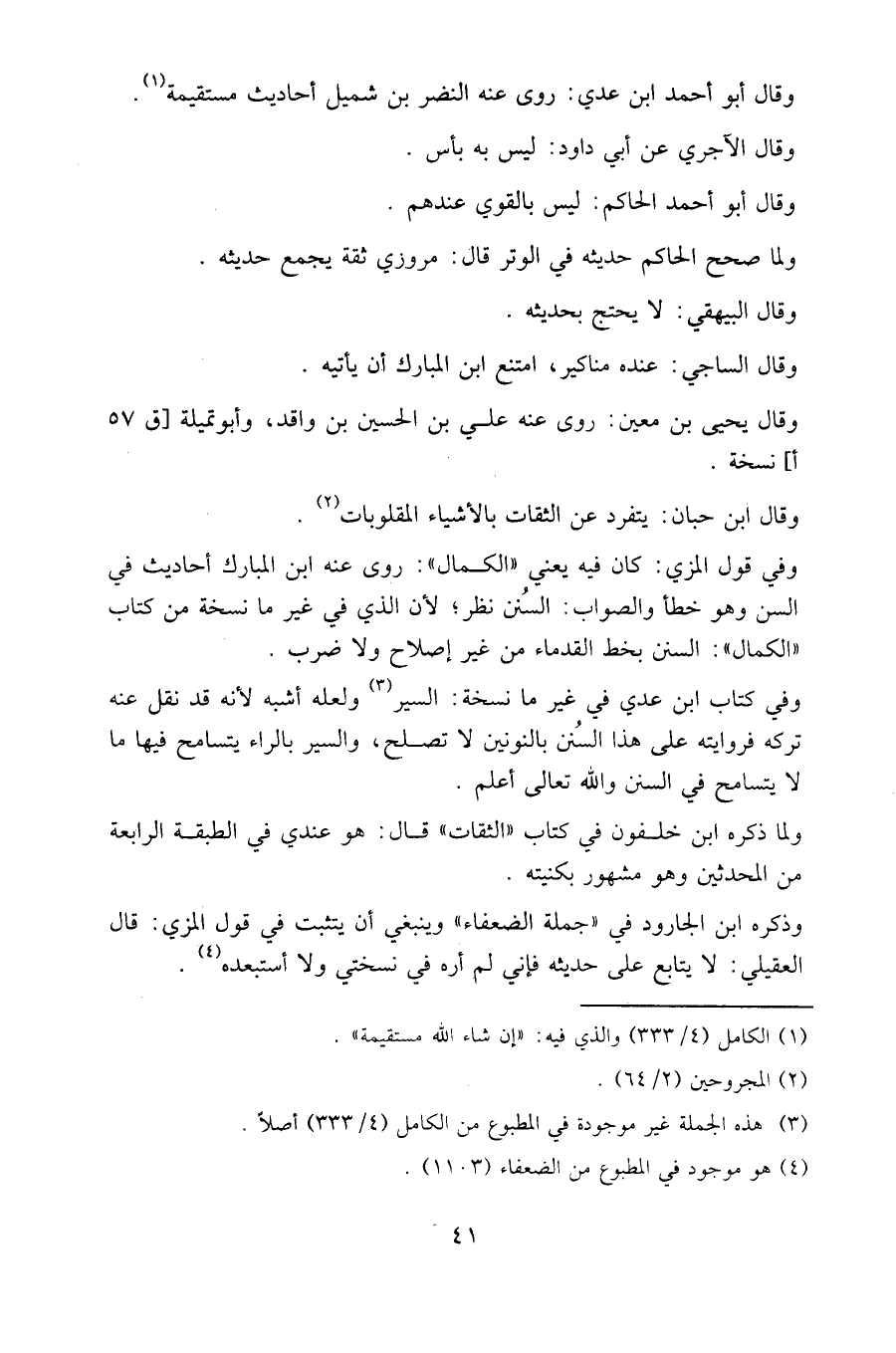 وقال أبو أحمد بن عدي: روى عنه النضر بن شميل أحاديث مستقيمة.
