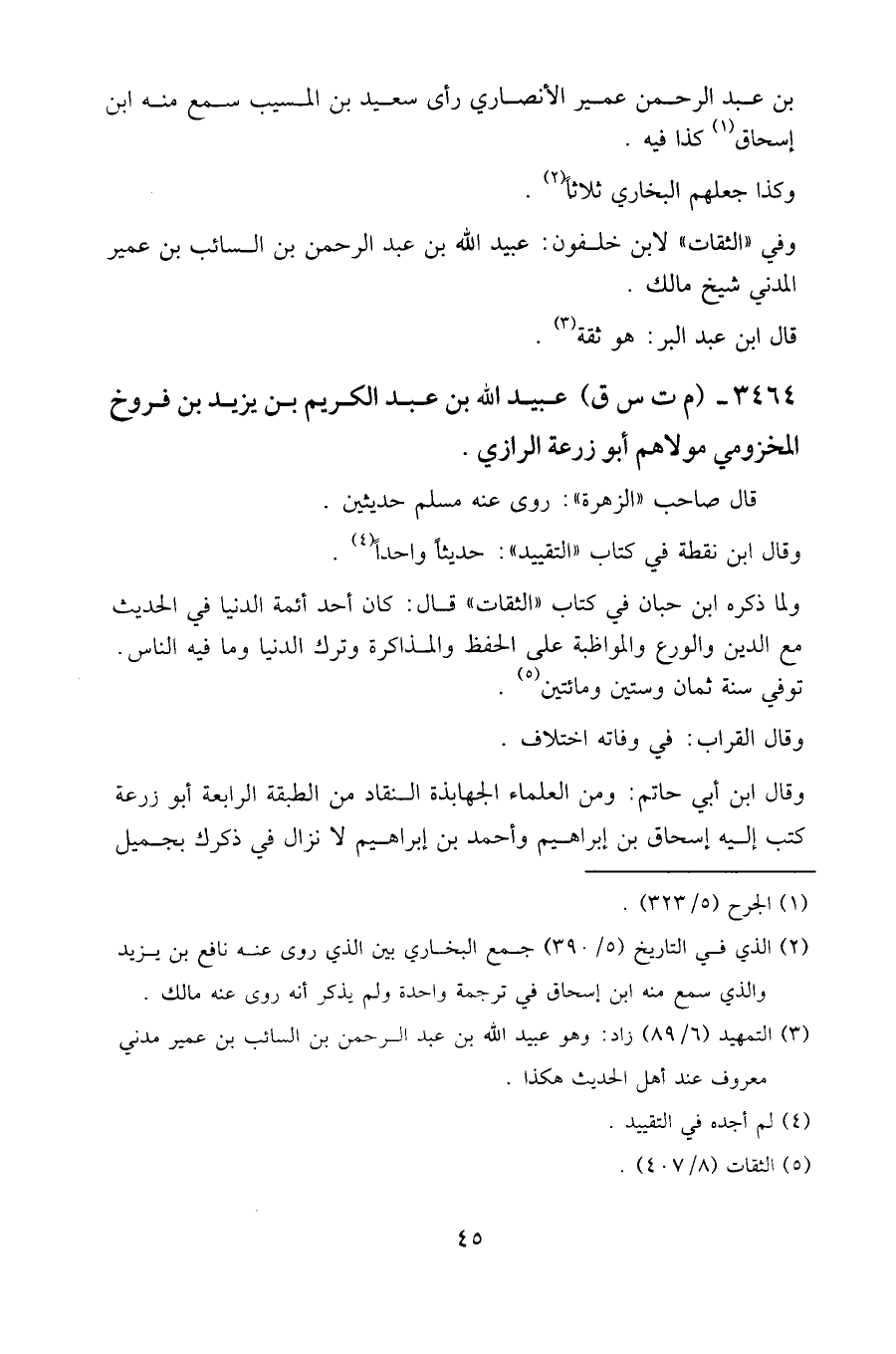٣٤٦٤ - (م ت س ق) عبيد الله بن عبد الكريم بن يزيد بن فروخ المخزومي مولاهم أبو زرعة الرازي.