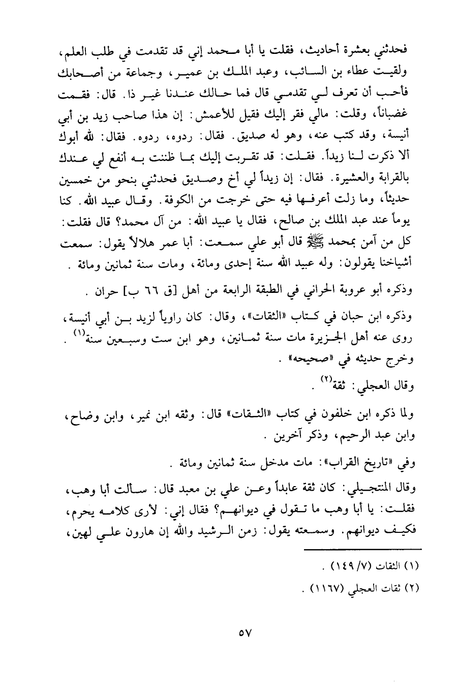ولما ذكره ابن خلفون في كتاب " الثقات " قال: وثقه ابن نمير، وابن وضاح، وابن عبد الرحيم، وذكر آخرين.