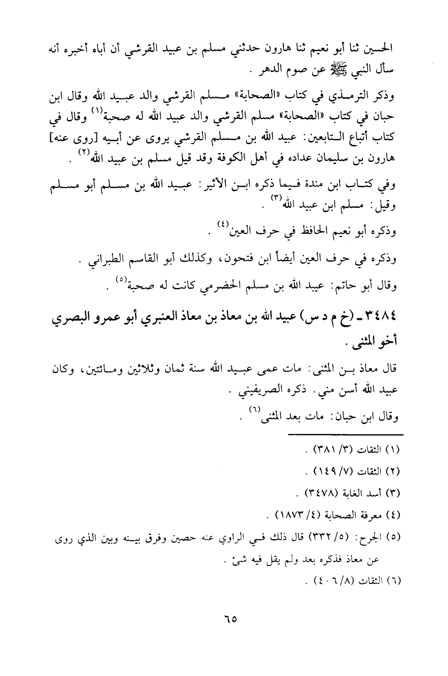 ٣٤٨٤ - (خ م د س) عبيد الله بن معاذ بن معاذ العنبري أبو عمرو البصري أخو المثنى.