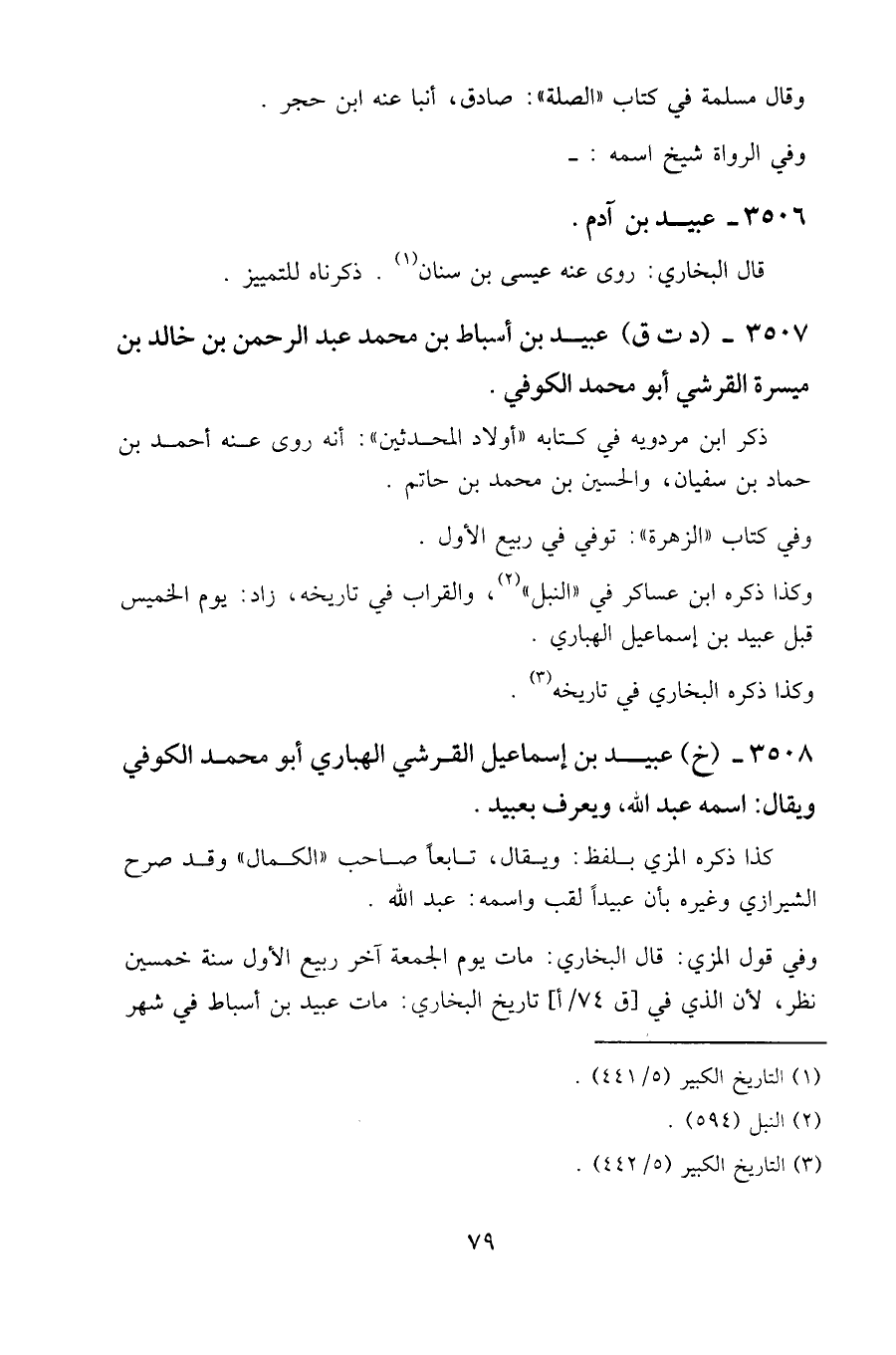 ٣٥٠٨ - (خ) عبيد بن إسماعيل القرشي الهباري أبو محمد الكوفي، ويقال: اسمه عبد الله، ويعرف بعبيد.