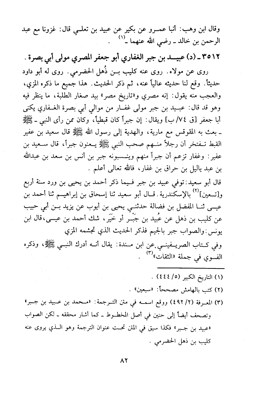 ٣٥١٢ - (د) عبيد بن جبر الغفاري أبو جعفر المصري مولى أبي بصرة.