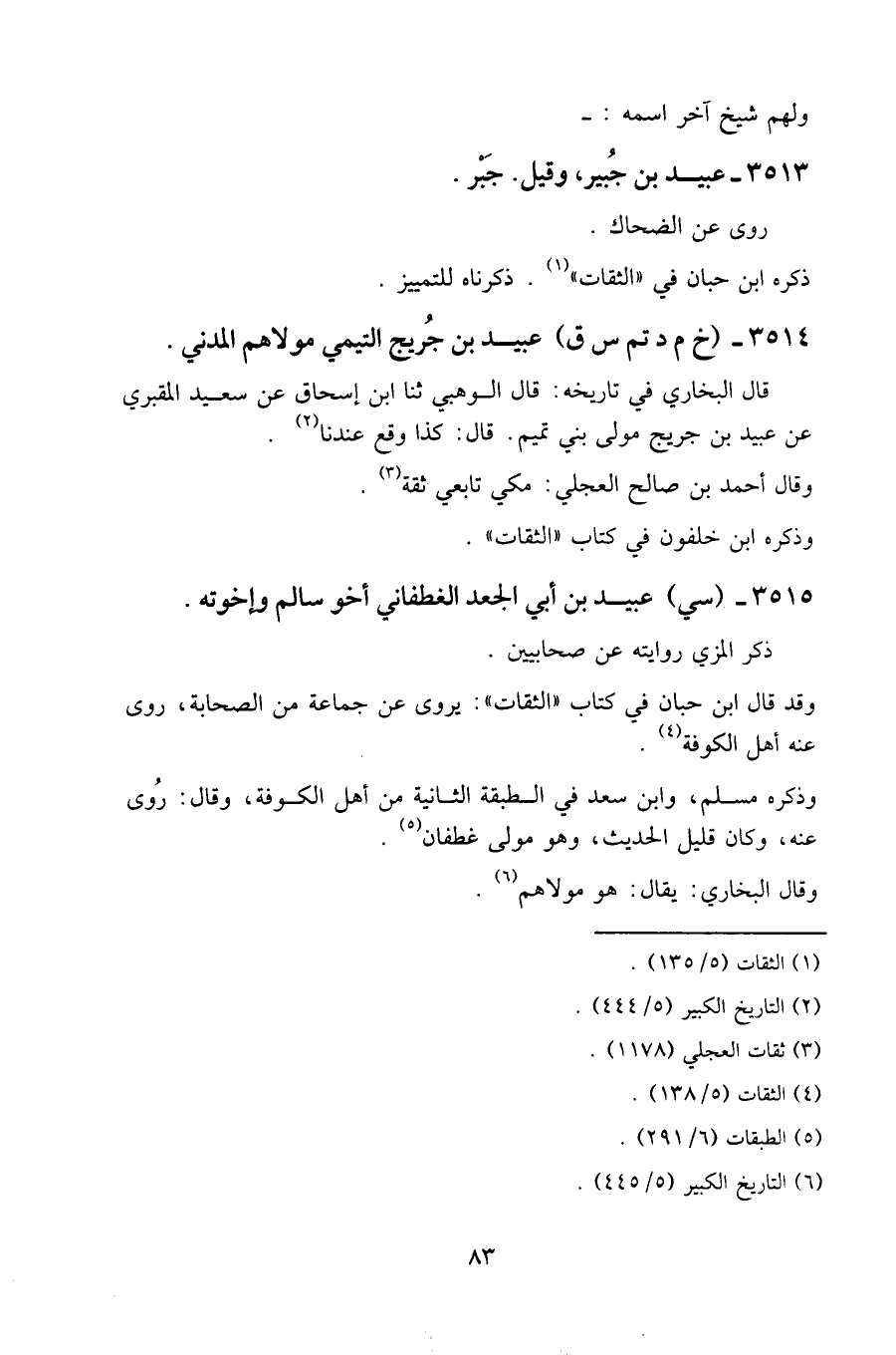 ٣٥١٤ - (خ م د تم س ق) عبيد بن جريج التيمي مولاهم المدني.