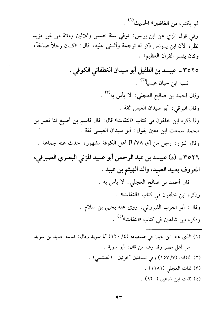 ٣٥٢٥ - عبيد بن الطفيل أبو سيدان الغطفاني الكوفي.