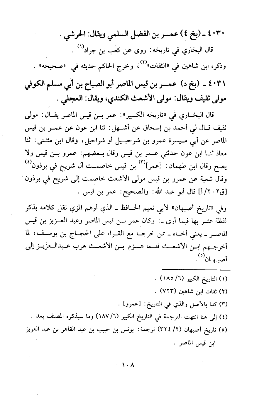 وفي " تاريخ أصبهان " لأبي نعيم الحافظ – الذي أوهم المزي نقل كلامه بذكر لفظة عثر بها فيما أرى -: وكان عمر بن قيس الماصر وعبد العزيز بن قيس الماصر – يعني أخاه – ممن خرجا مع القراء على الحجاج بن يوسف، لما أخرجهم ابن الأشعث فلما هزم ابن الأشعث هرب عبد العزيز إلى أصبهان.