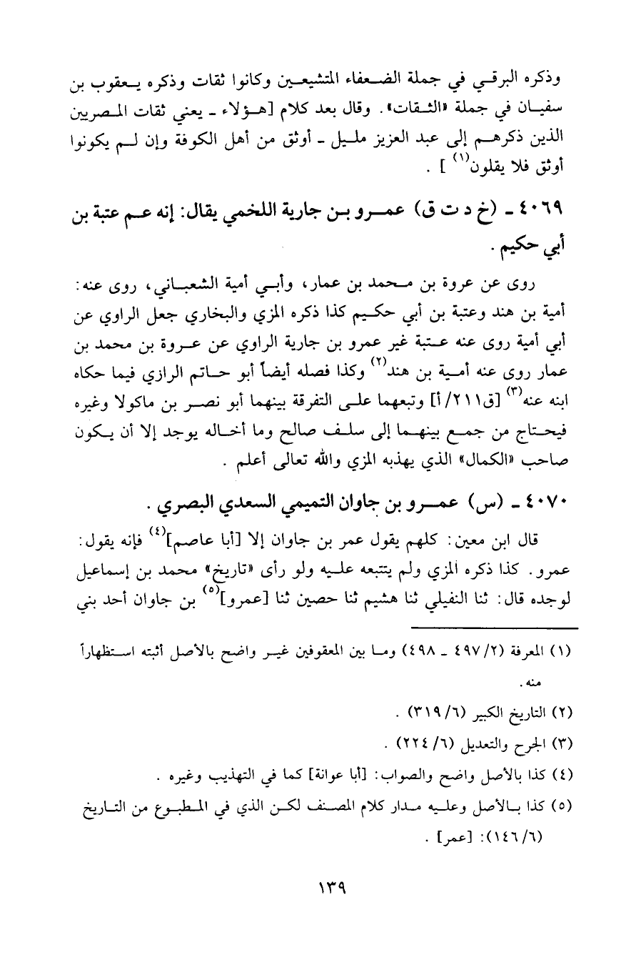 كذا ذكره المزي ولم يتتبعه عليه ولو رأى " تاريخ " محمد بن إسماعيل لوجده قال: ثنا النفيلي، ثنا هشيم، ثنا حصين، ثنا [عمرو] بن جاوان أحد بني