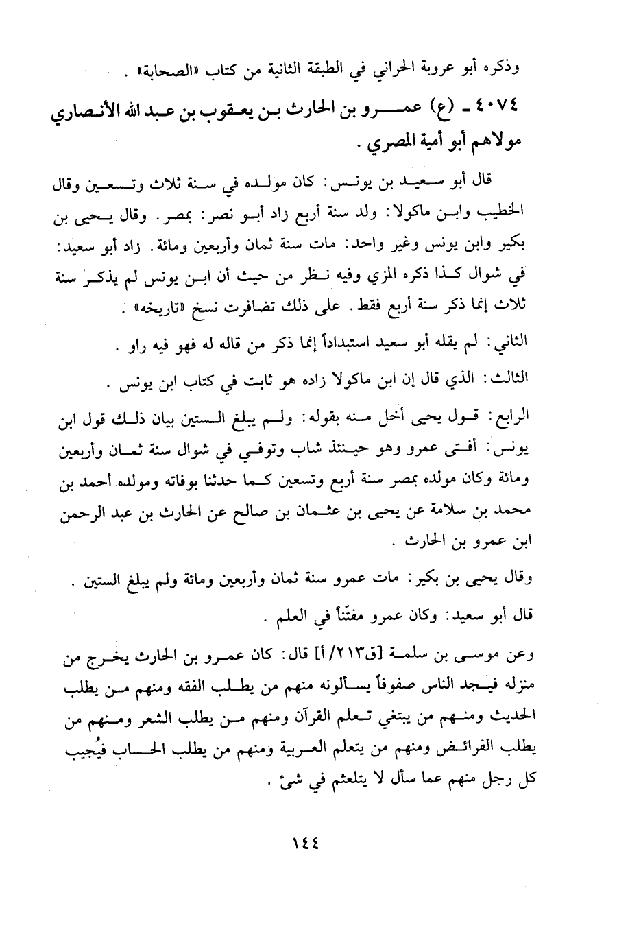 ٤٠٧٤ - (ع) عمرو بن الحارث بن يعقوب بن عبد الله الأنصاري مولاهم أبو أمية المصري.