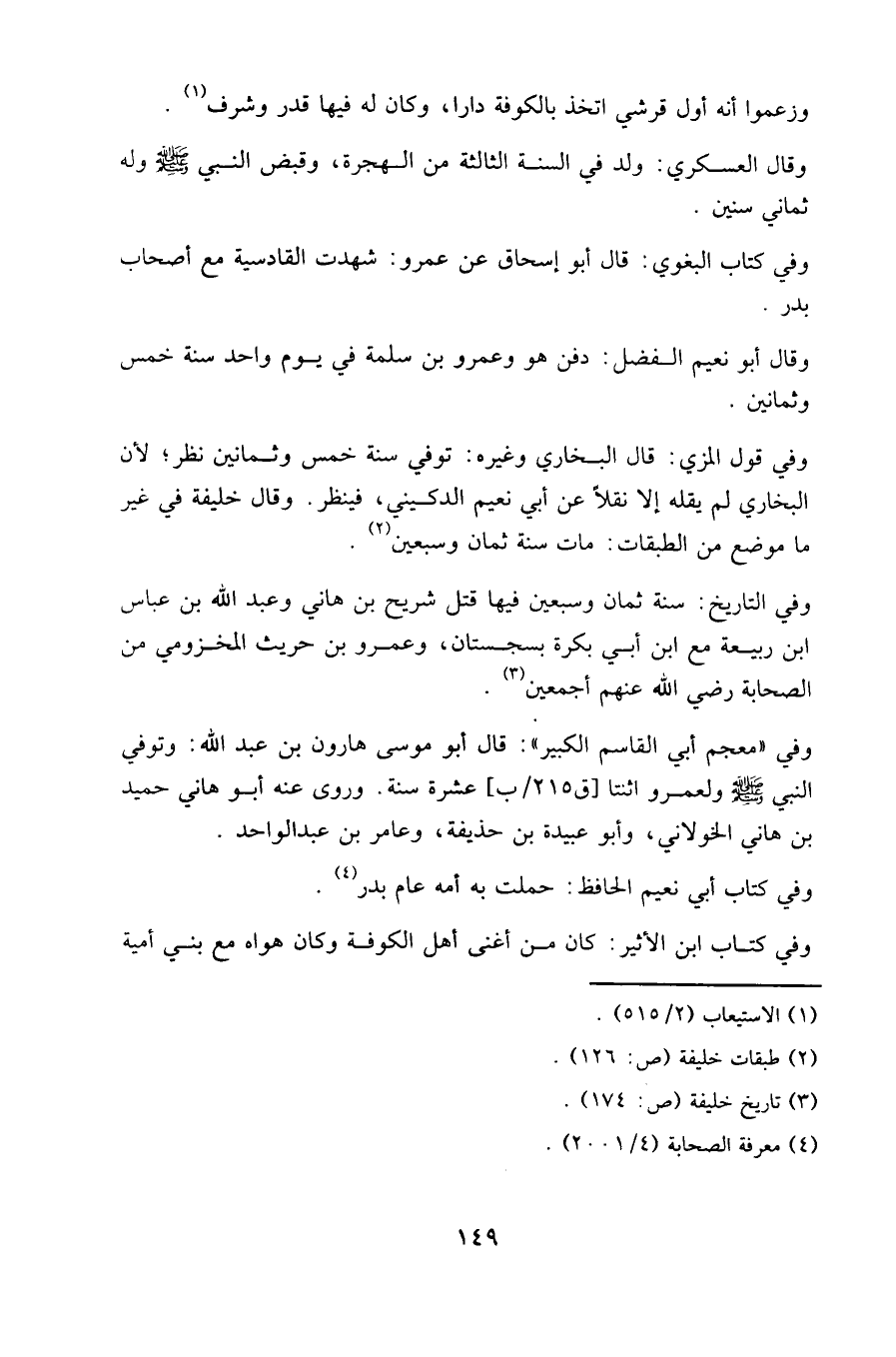 وفي كتاب البغوي: قال أبو إسحاق عن عمرو: شهدت القادسية مع أصحاب بدر.
