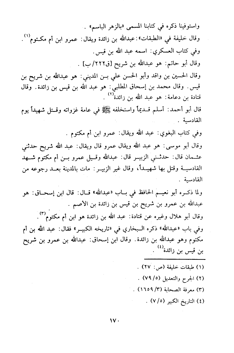 وفي باب " عبد الله " ذكره البخاري في " تاريخه الكبير " فقال: عبد الله ابن أم مكتوم؛ وهو عبد الله بن زائدة.