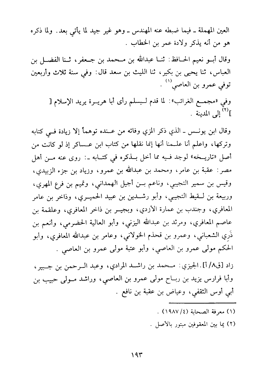وقال أبو نعيم الحافظ: ثنا عبد الله بن محمد بن جعفر، ثنا الفضل بن العباس، ثنا يحيى بن بكير، ثنا الليث بن سعد قال: وفي سنة ثلاث وأربعين توفي عمرو بن العاصي.