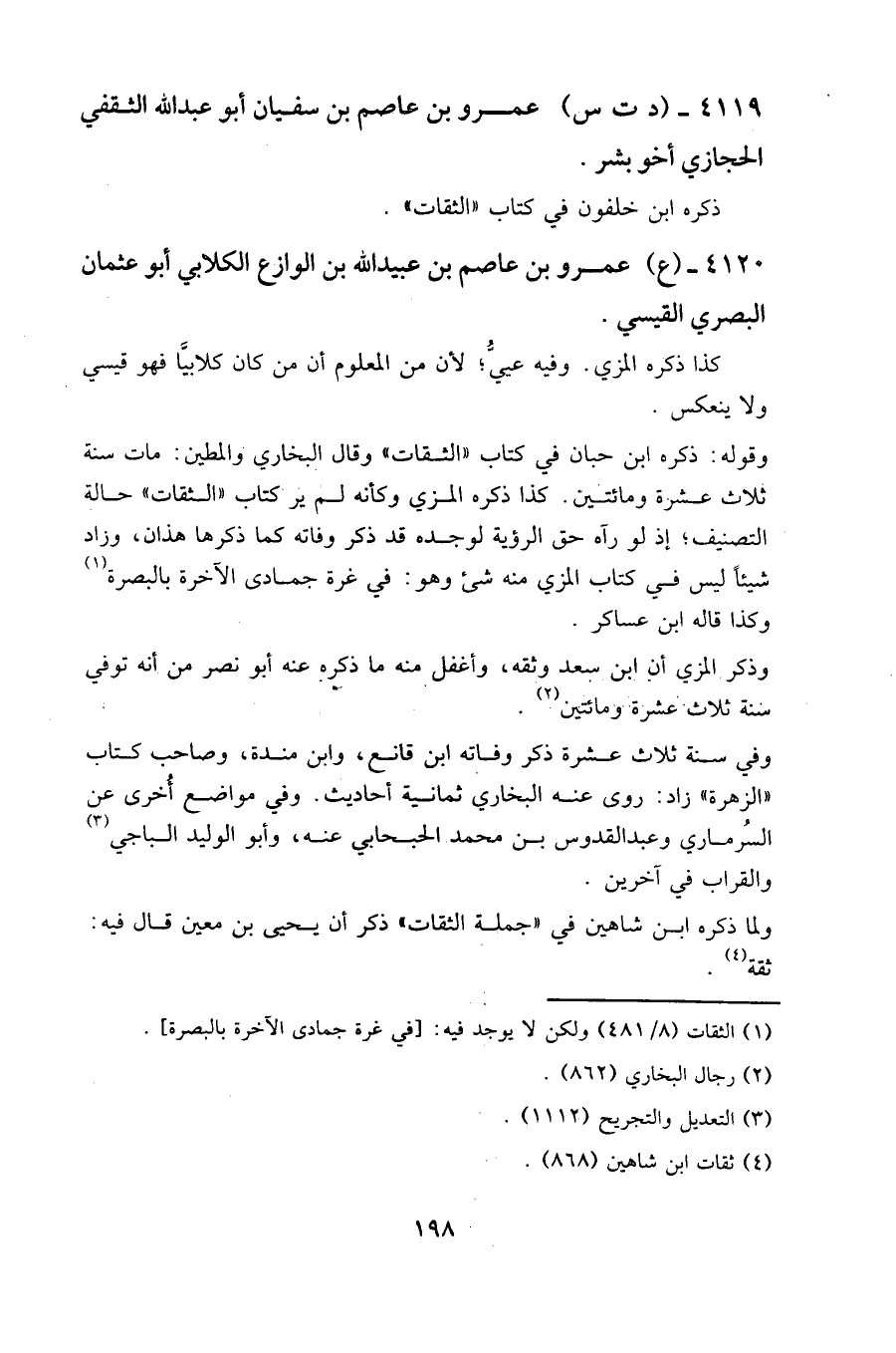 ٤١١٩ - (د ت س) عمرو بن عاصم بن سفيان أبو عبد الله الثقفي الحجازي أخو بشر.