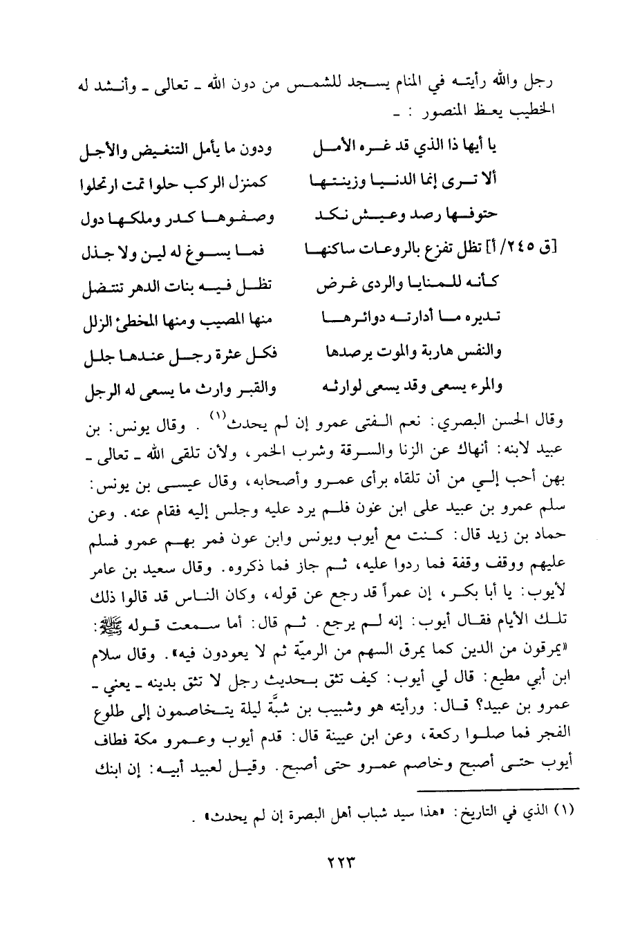 رجل والله رأيته في المنام يسجد للشمس من دون الله – تعالى –، وأنشد له الخطيب يعظ المنصور: