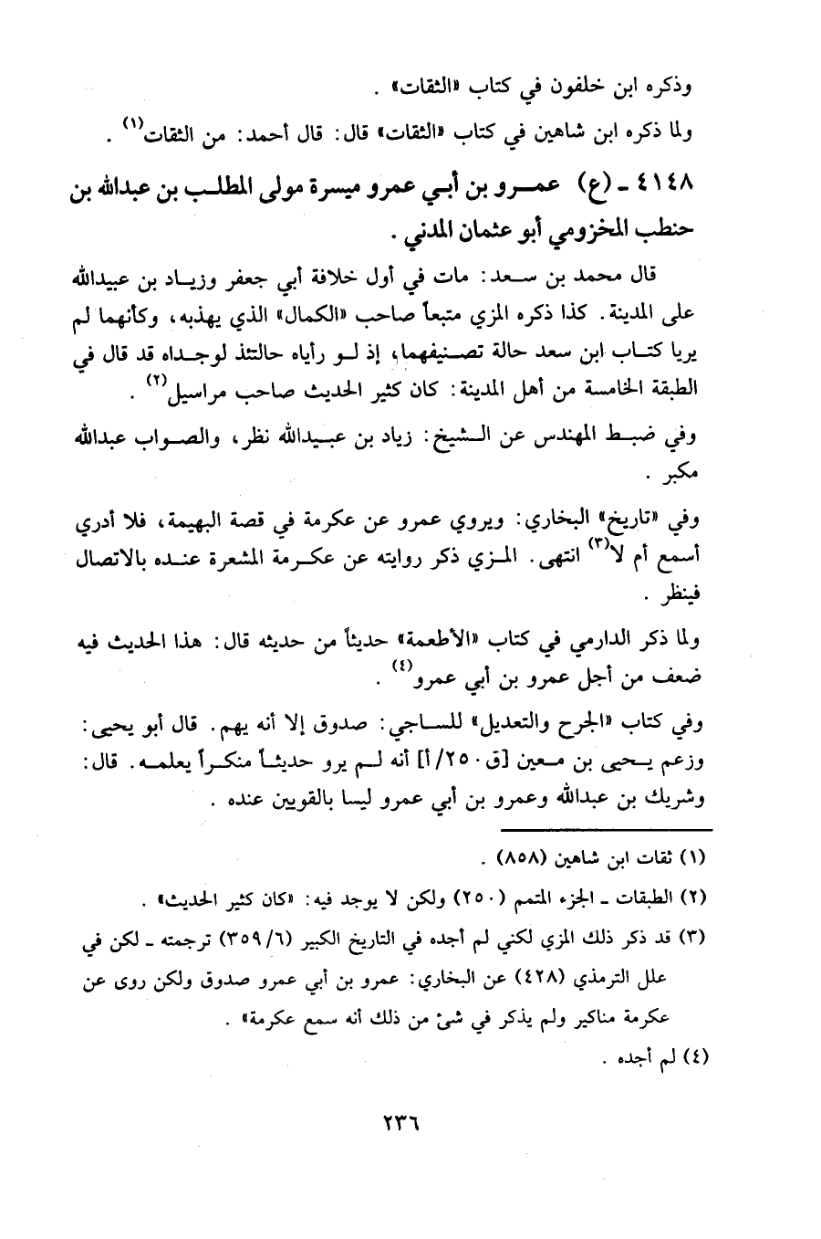 ٤١٤٨ - (ع) عمرو بن أبي عمرو ميسرة مولى المطلب بن عبد الله بن حنطب المخزومي أبو عثمان المدني.