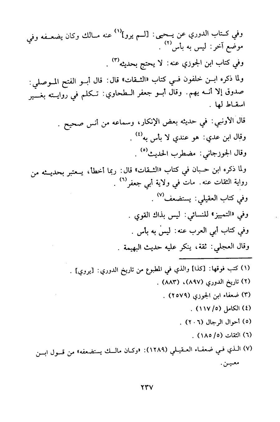 وفي كتاب الدوري عن يحيى: [لم يرو] عنه مالك وكان يضعفه. وفي موضع آخر: ليس به بأس.
