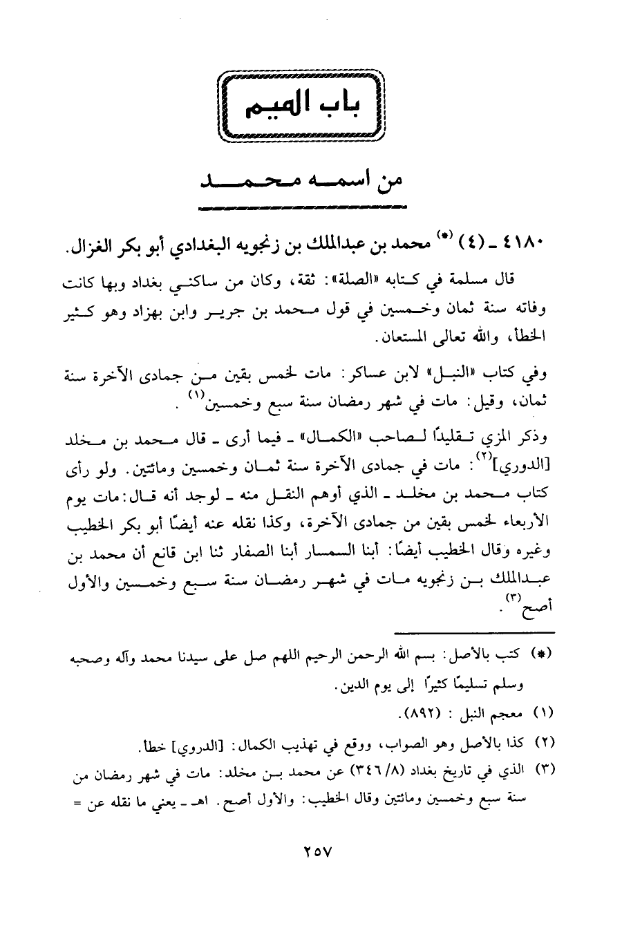 ٤١٨٠ - (٤) محمد بن عبد الملك بن زنجويه البغدادي أبو بكر الغزال.