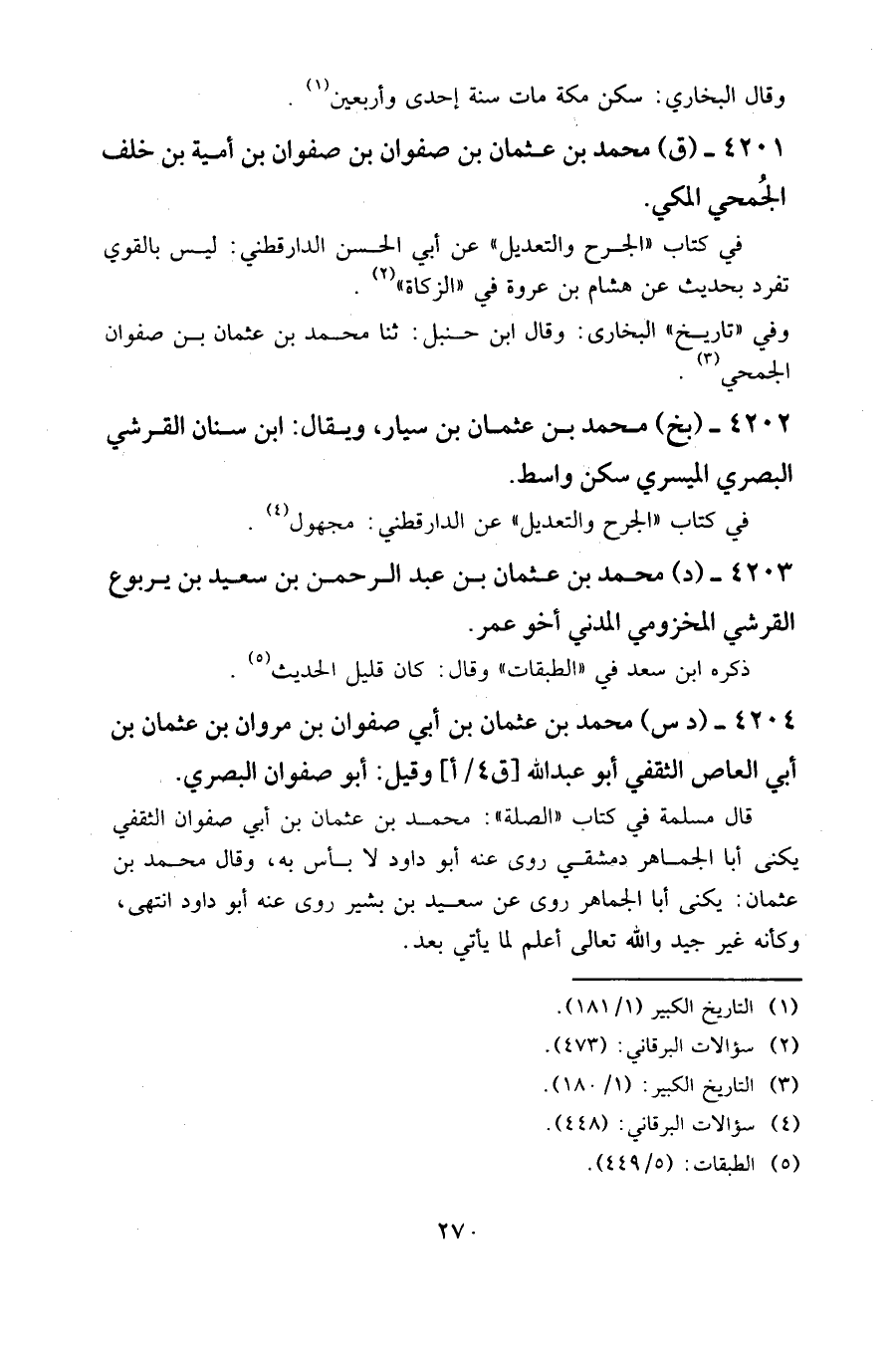 ٤٢٠١ - (ق) محمد بن عثمان بن صفوان بن صفوان بن أمية بن خلف الجمحي المكي.