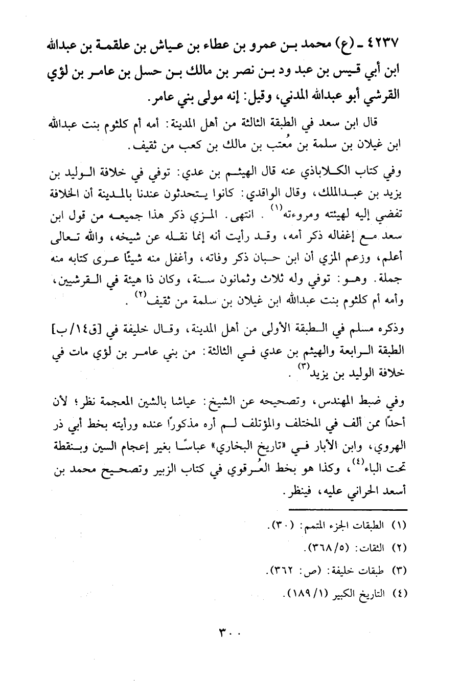 وفي ضبط المهندس، وتصحيحه عن الشيخ: عياشا بالشين المعجمة نظر؛ لأن أحدًا ممن ألف في المختلف والمؤتلف لم أره مذكورًا عنده ورأيته بخط أبي ذر الهروي، وابن الأبار في " تاريخ البخاري " عباسًا بغير إعجام السين وبنقطة تحت الباء، وكذا هو بخط العرقوي في كتاب الزبير وتصحيح محمد بن أسعد الحراني عليه، فينظر.