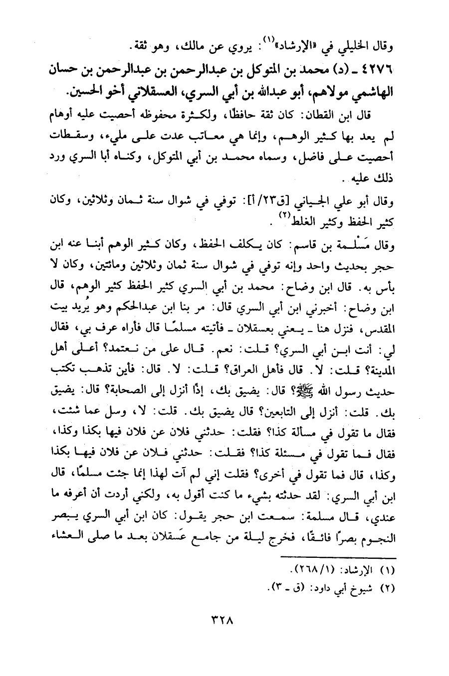 ٤٢٧٦ - (د) محمد بن المتوكل بن عبد الرحمن بن عبد الرحمن بن حسان الهاشمي مولاهم، أبو عبد الله بن أبي السري، العسقلاني أخو الحسين.