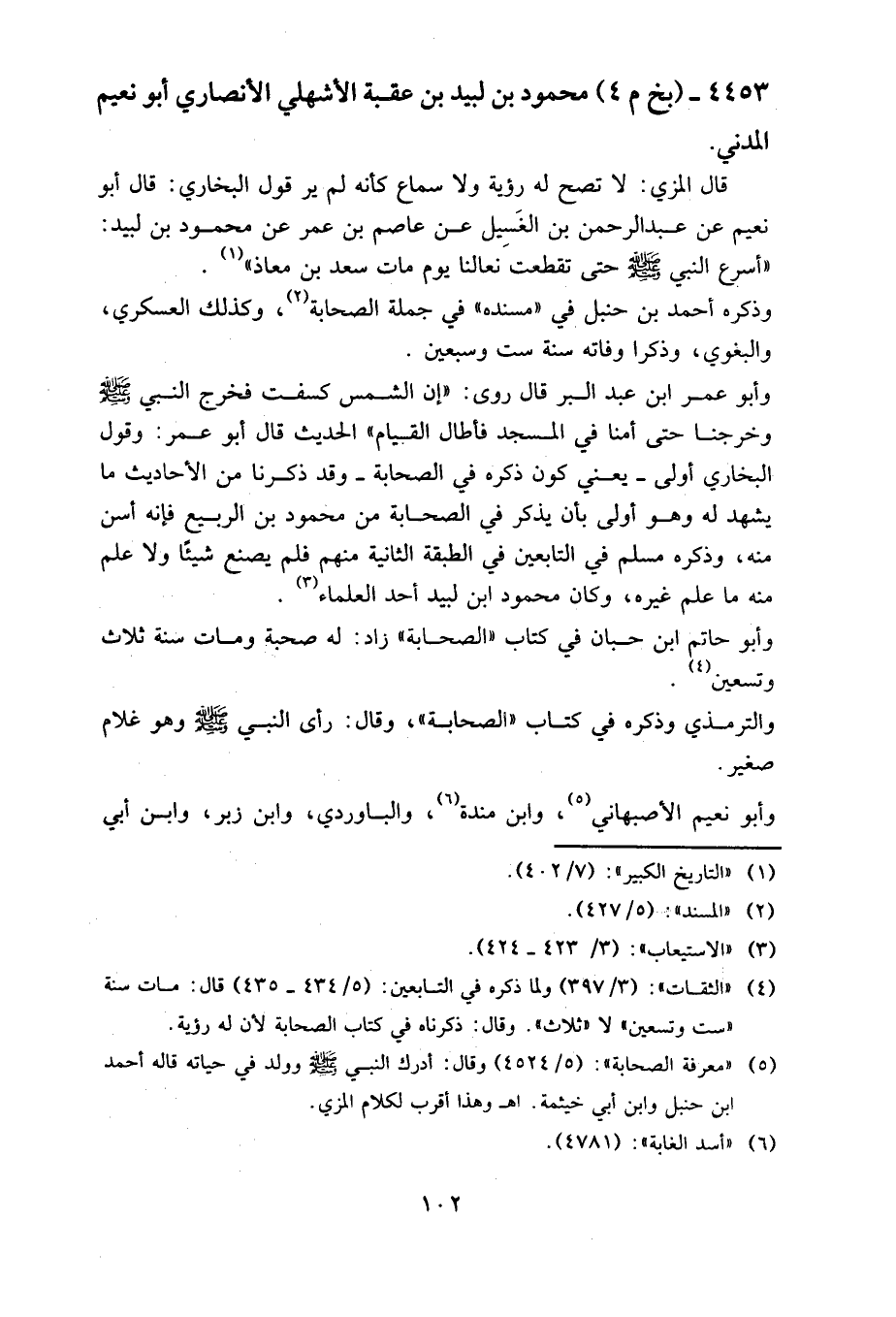 ٤٤٥٣ - (بخ م ٤) محمود بن لبيد بن عقبة الأشهلي الأنصاري، أبو نعيم المدني.