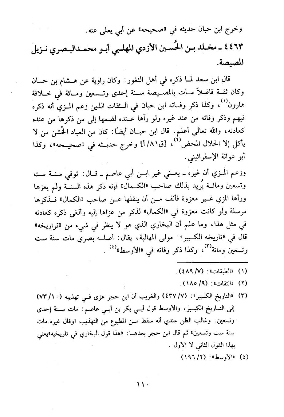 ٤٤٦٣ - مخلد بن الحُسين الأزدي المهلبي أبو محمد البصري نزيل المصيصة.
