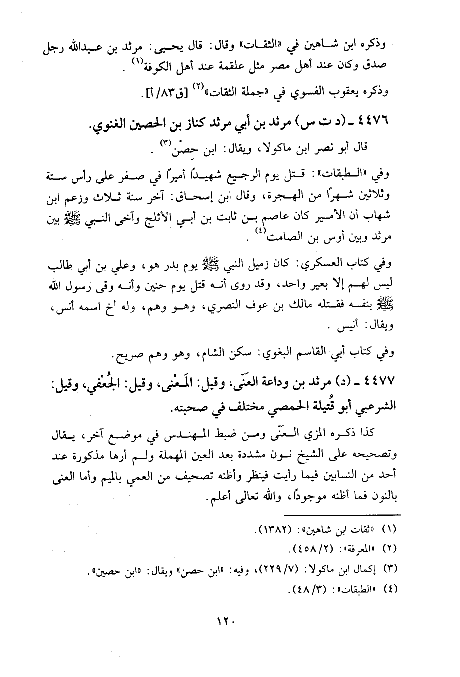 ٤٤٧٦ - (د ت س) مرثد بن أبي مرثد، كناز بن الحصين الغنوي.