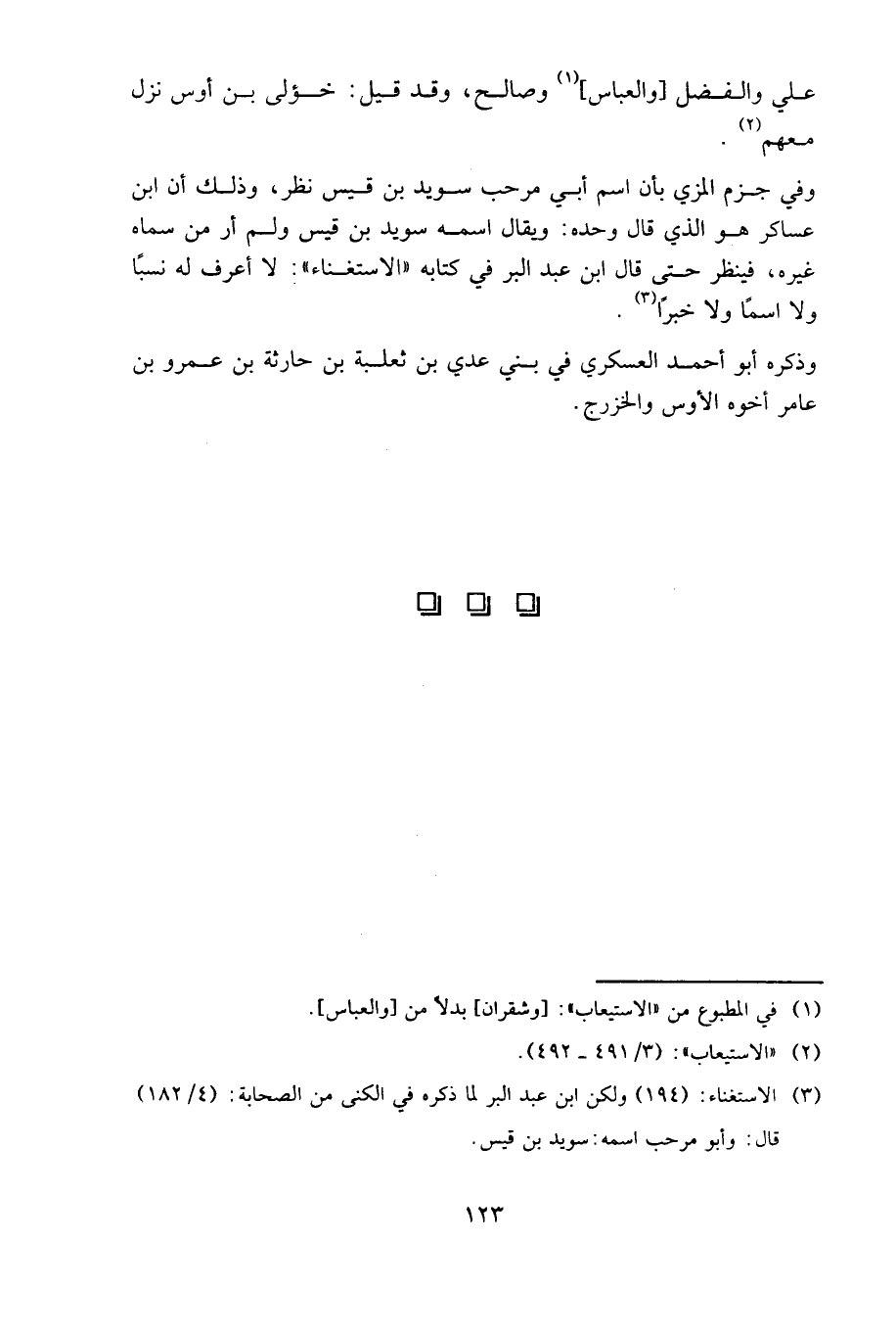 وفي جزم المزي بأن اسم أبي مرحب سويد بن قيس نظر، وذلك أن ابن عساكر هو الذي قال وحده: ويقال اسمه سويد بن قيس، ولم أر من سماه غيره، فينظر، حتى قال ابن عبد البر في كتابه «الاستغناء»: لا أعرف له نسبا ولا اسما ولا خبرا.