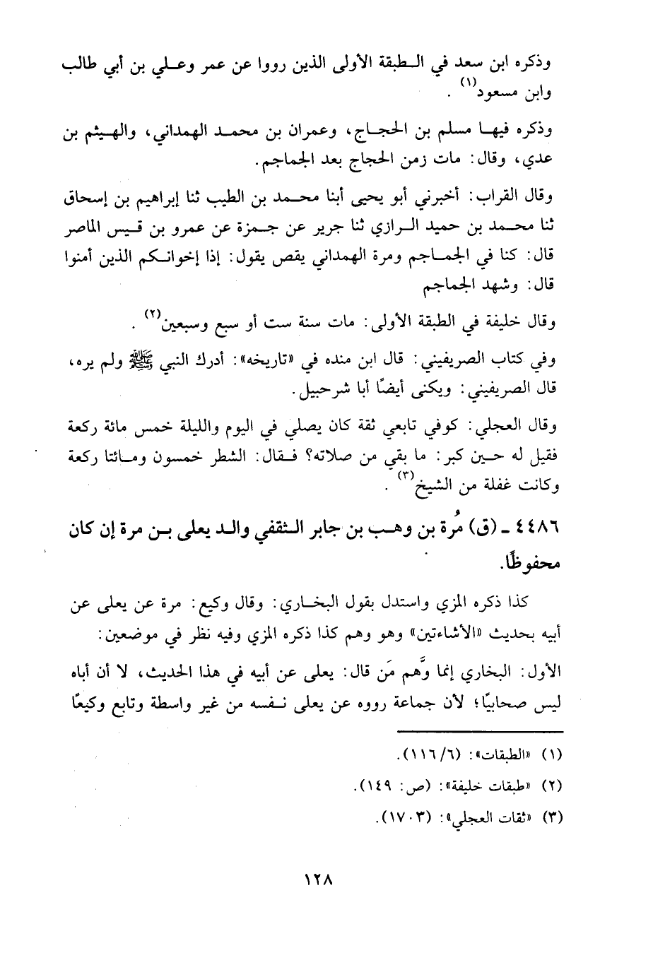 وذكره فيها مسلم بن الحجاج، وعمران بن محمد الهمداني، والهيثم بن عدي، وقال: مات زمن الحجاج بعد الجماجم.
