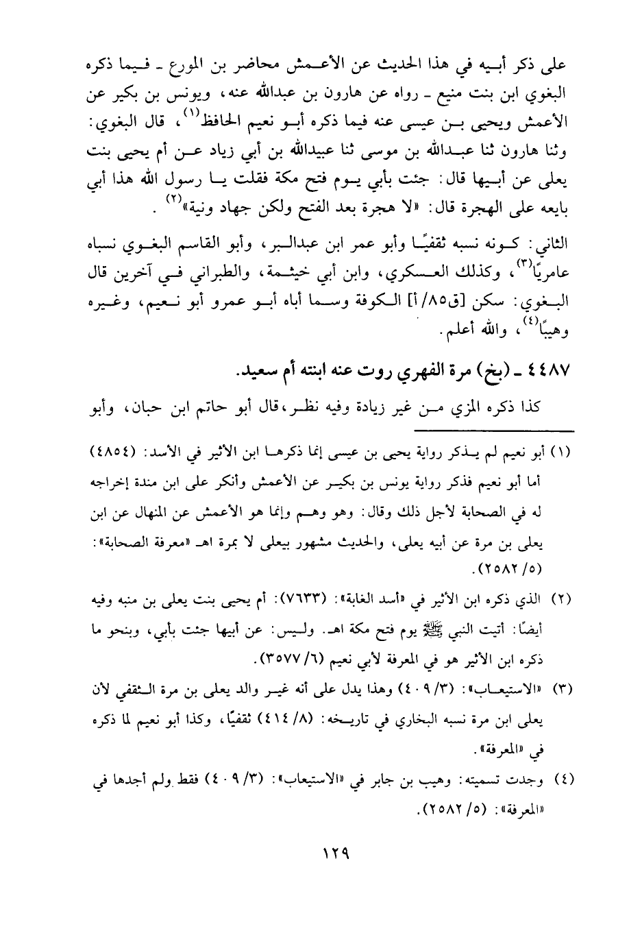 ٤٤٨٧ - (بخ) مرة الفهري، روت عنه ابنته أم سعيد.
