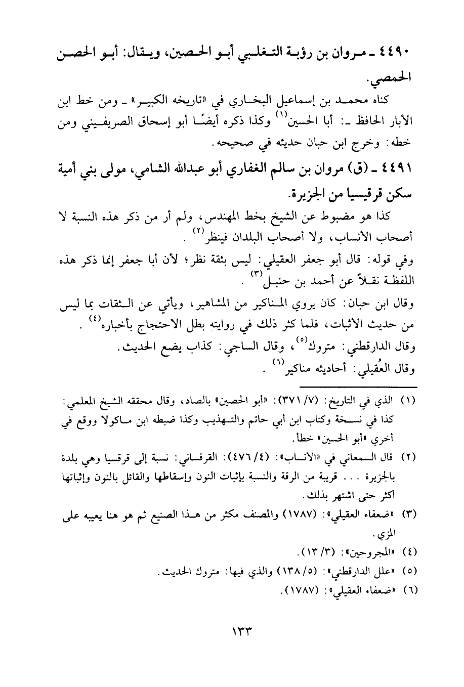 ٤٤٩٠ - مروان بن رؤبة التغلبي، أبو الحصين، ويقال: أبو الحصن الحمصي.