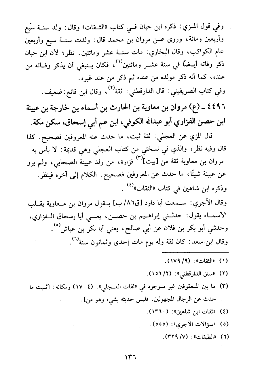 ٤٤٩٦ - (ع) مروان بن معاوية بن الحارث بن أسماء بن خارجة بن عيينة بن حصن الفزاري، أبو عبد الله الكوفي، ابن عم أبي إسحاق، سكن مكة.