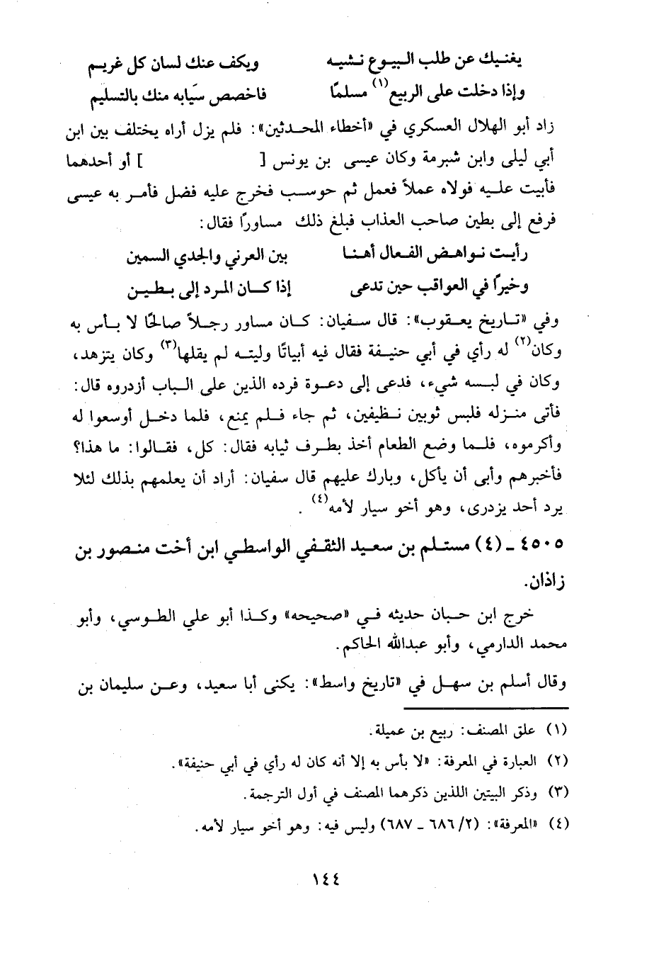 ٤٥٠٥ - (٤) مستلم بن سعيد الثقفي الواسطي، ابن أخت منصور بن زاذان.